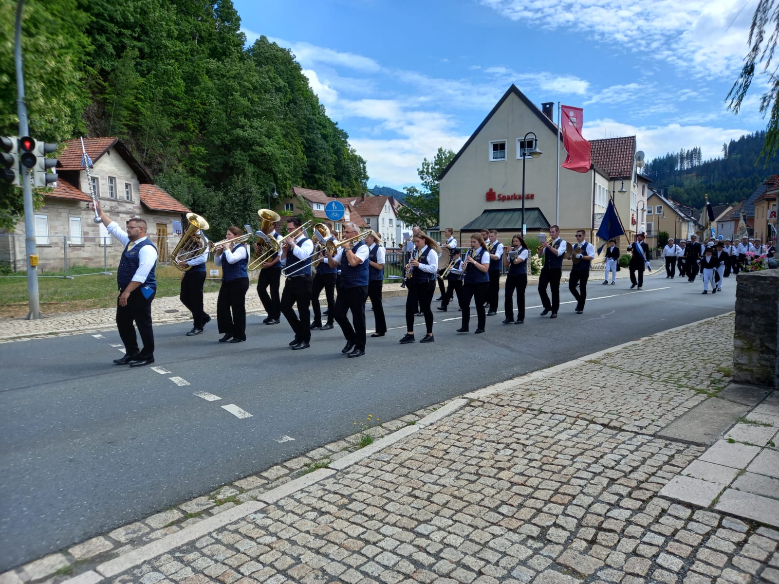 We were very warmly welcomed and entertained. We were invited to take part in their Church Festival (Kirchweih) service and parades which was a privilege and much appreciated. The Toothill Alumni Dance Band performed with great skill at several venues and were enthusiastically received. Helen Markwick presented a project from year 5 pupils at Carnarvon school to the Bürgermeister – Jens Korn – for the pupils at Wallenfels primary school.