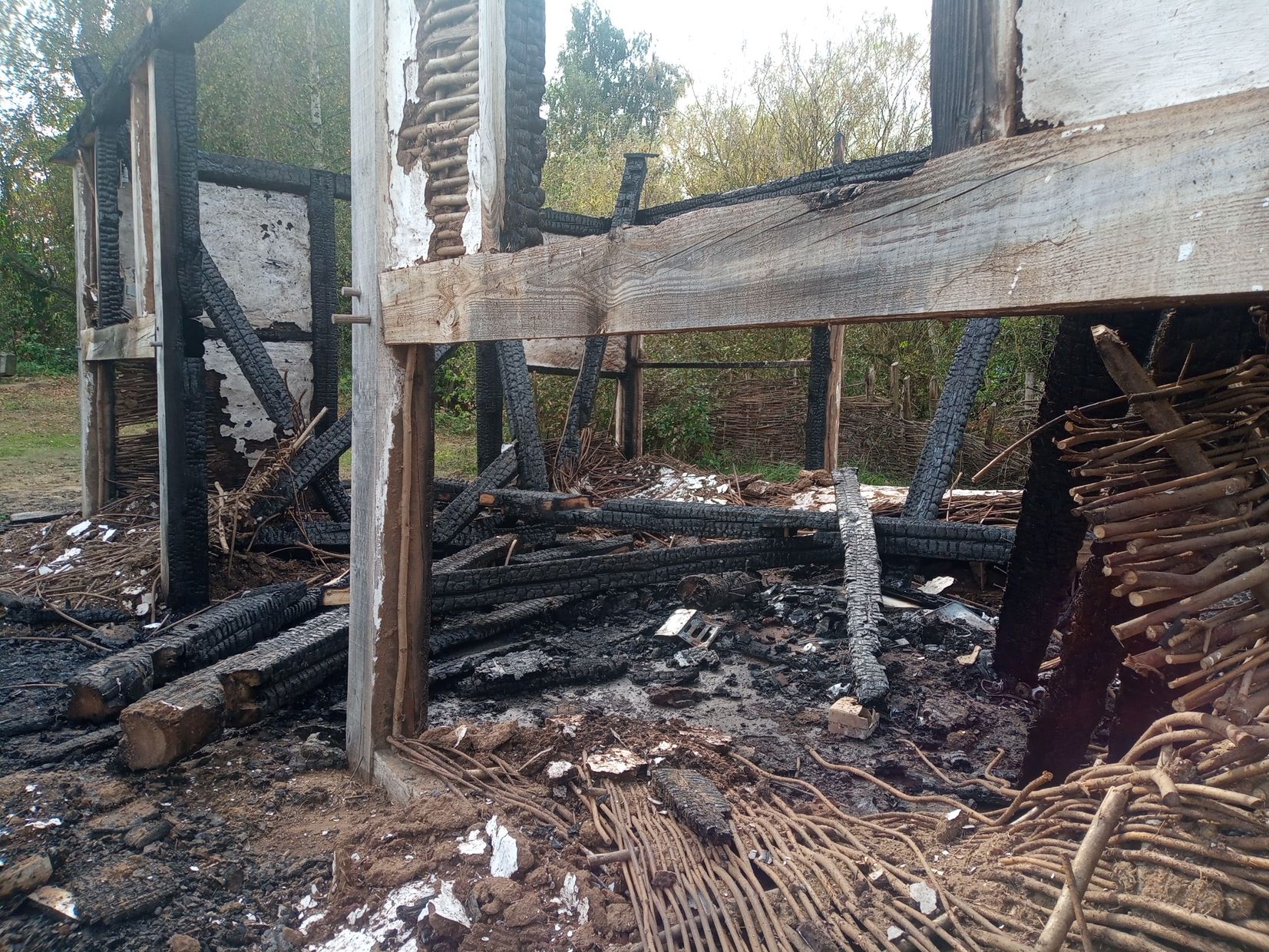 The fire, which reportedly happened on Sunday 19th September, decimated an experimental archeological structure constructed as part of a project with Nottinghamshire County Council archaeological team and volunteers.
