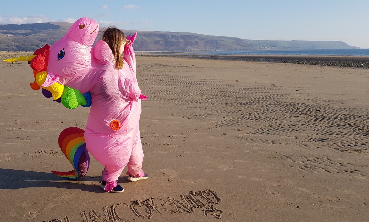 Although the unicorn costume was not easy to run in, May was still determined to keep going. During each of her runs, she covered between 2 – 2.5 miles, starting her journey at the end of February. She even continued running throughout her family holiday in April.