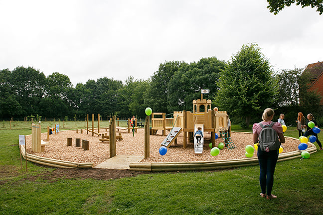 East Leake Parish Council’s newly re-equipped children’s play area opened on 28th July, on Costock Road. Designed for children from 2 to 6 years old, the centrepiece is a bespoke three-tower castle structure featuring an engaging mix of imaginative and adventure play activities.