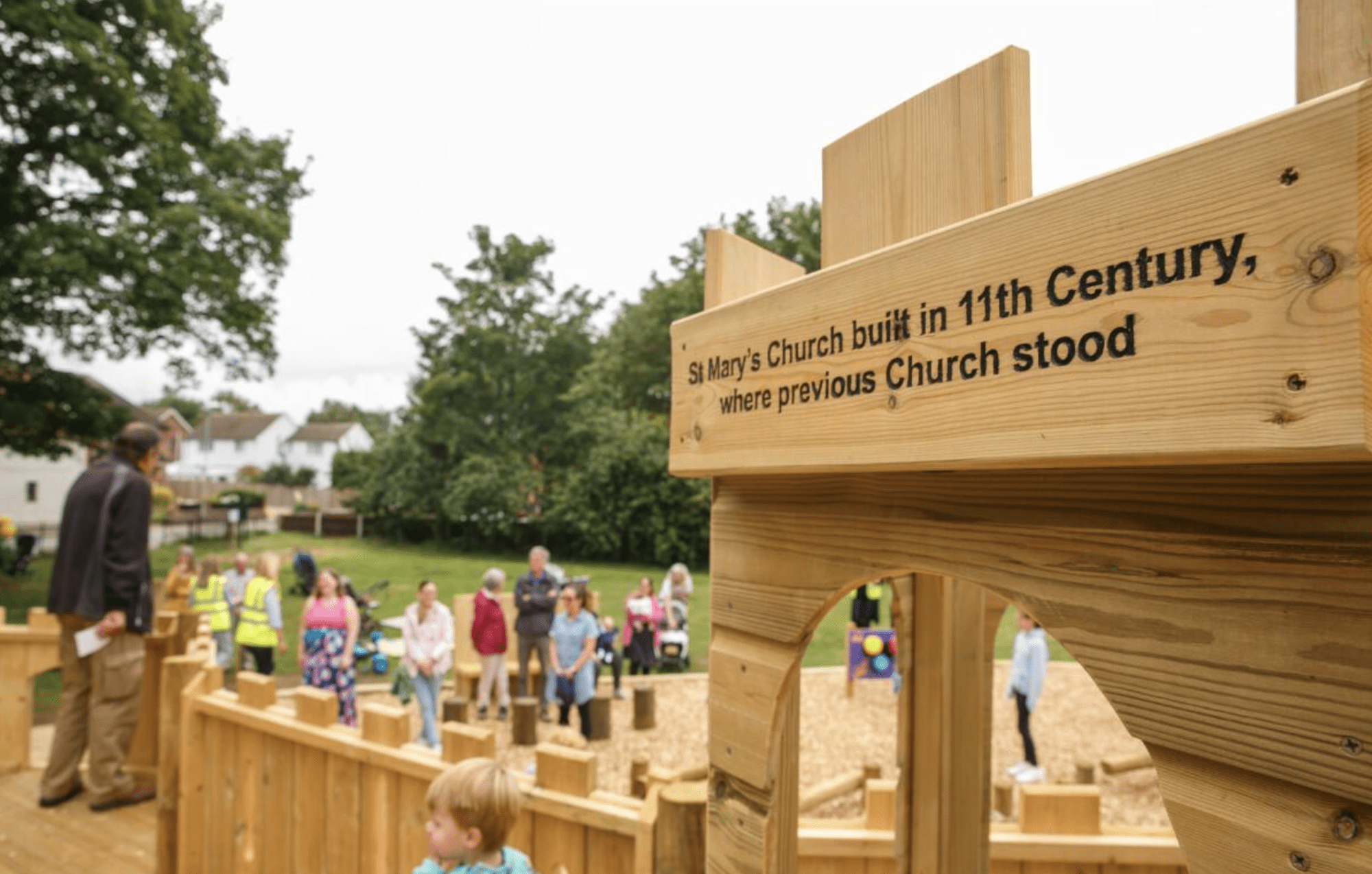 The equipment has been provided and installed by Setter Play, who have researched the history of the village and customised the castle. Aleks Bhowmick of Setter Play commented “We are delighted to be working with East Leake Parish Council on this project. The castle and balancing trail provide suitable challenge for the upper range of the age group whilst also inviting little ones to hold their parents’ hands as they make their way around the trail and into the castle. A clatter bridge activity evokes a drawbridge leading up to the castle gate house. Historical facts engraved around the castle keep will spark young imaginations and allow parents and carers to create adventures with their children. The Parish Council coat of arms flies on the flag overhead.”
