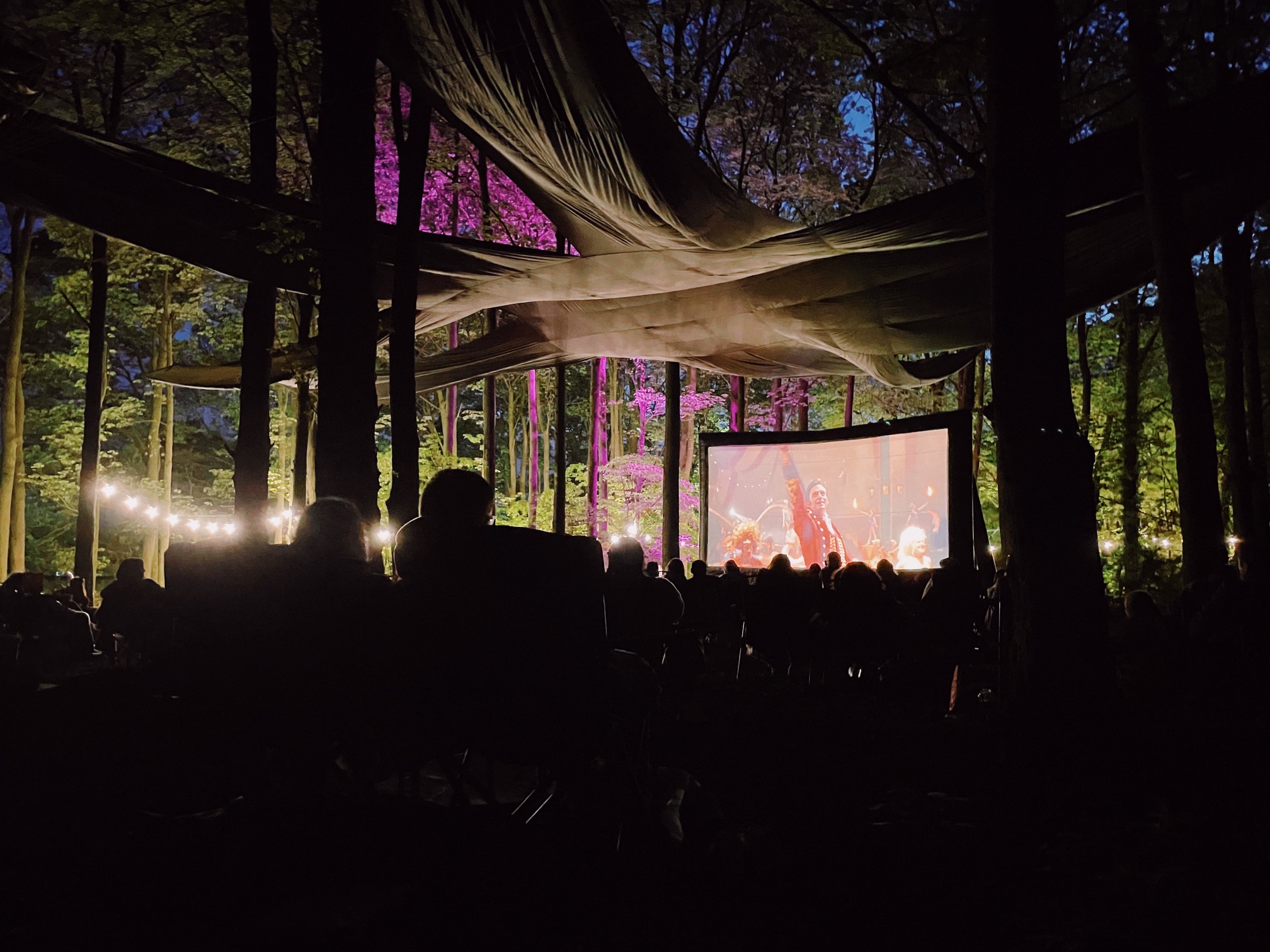 The staff were super friendly and directed us round to the cinema area which was at the end of a short path through the woods, beautifully lit by fairy lights. The screen was definitely large enough for the number of viewers and we sat amongst the trees where certain areas had canopies draping across in case of rainfall.