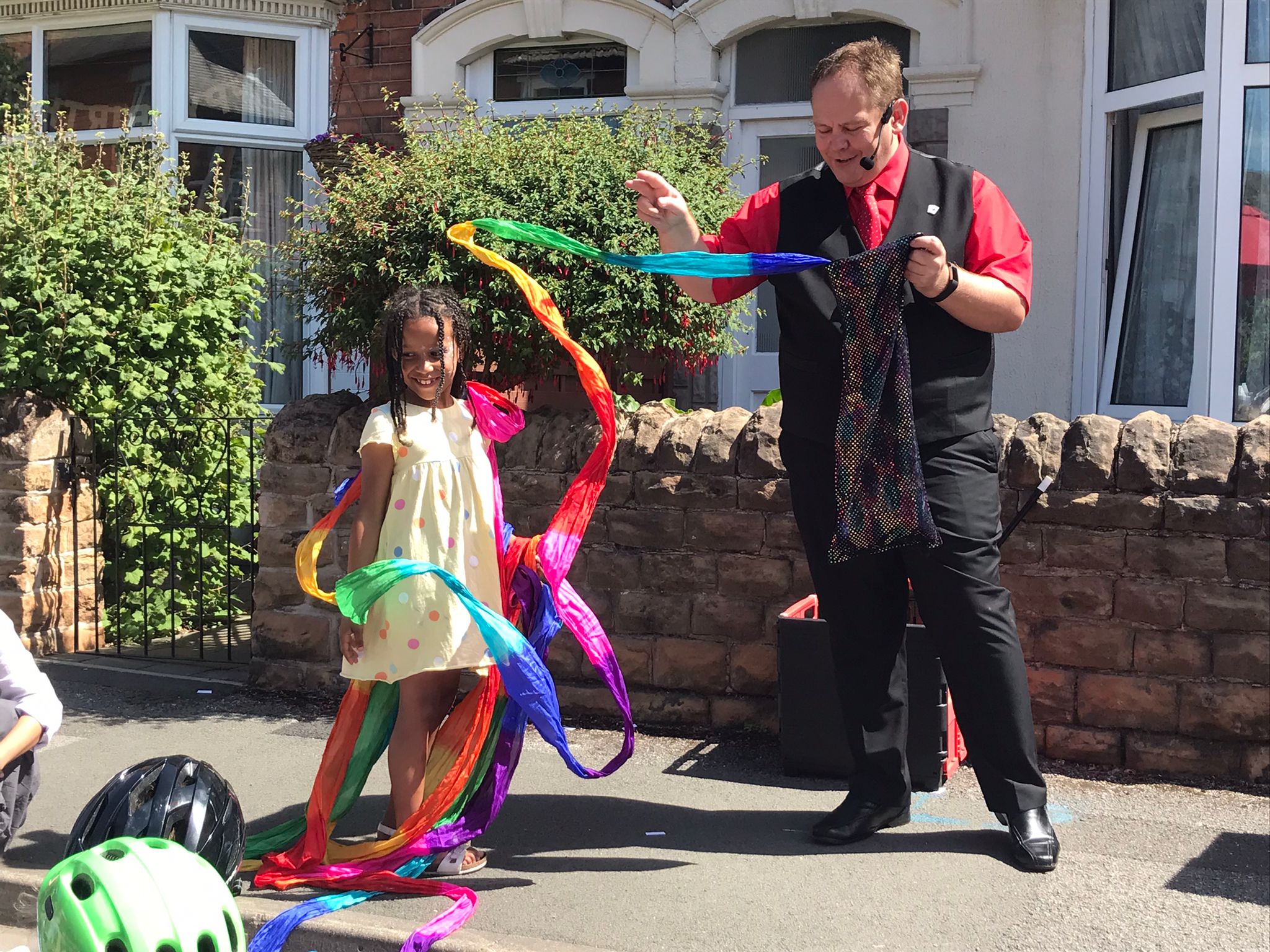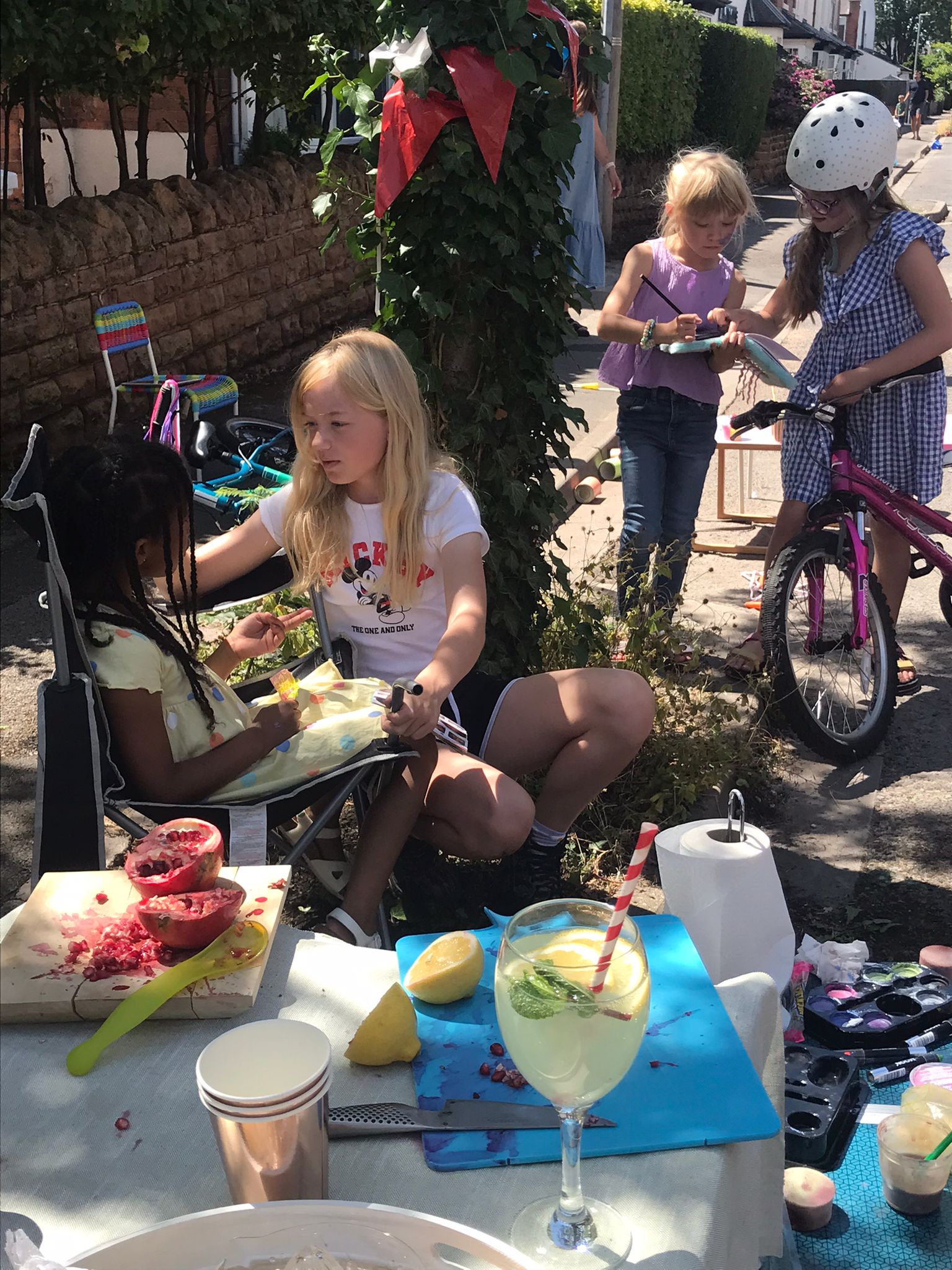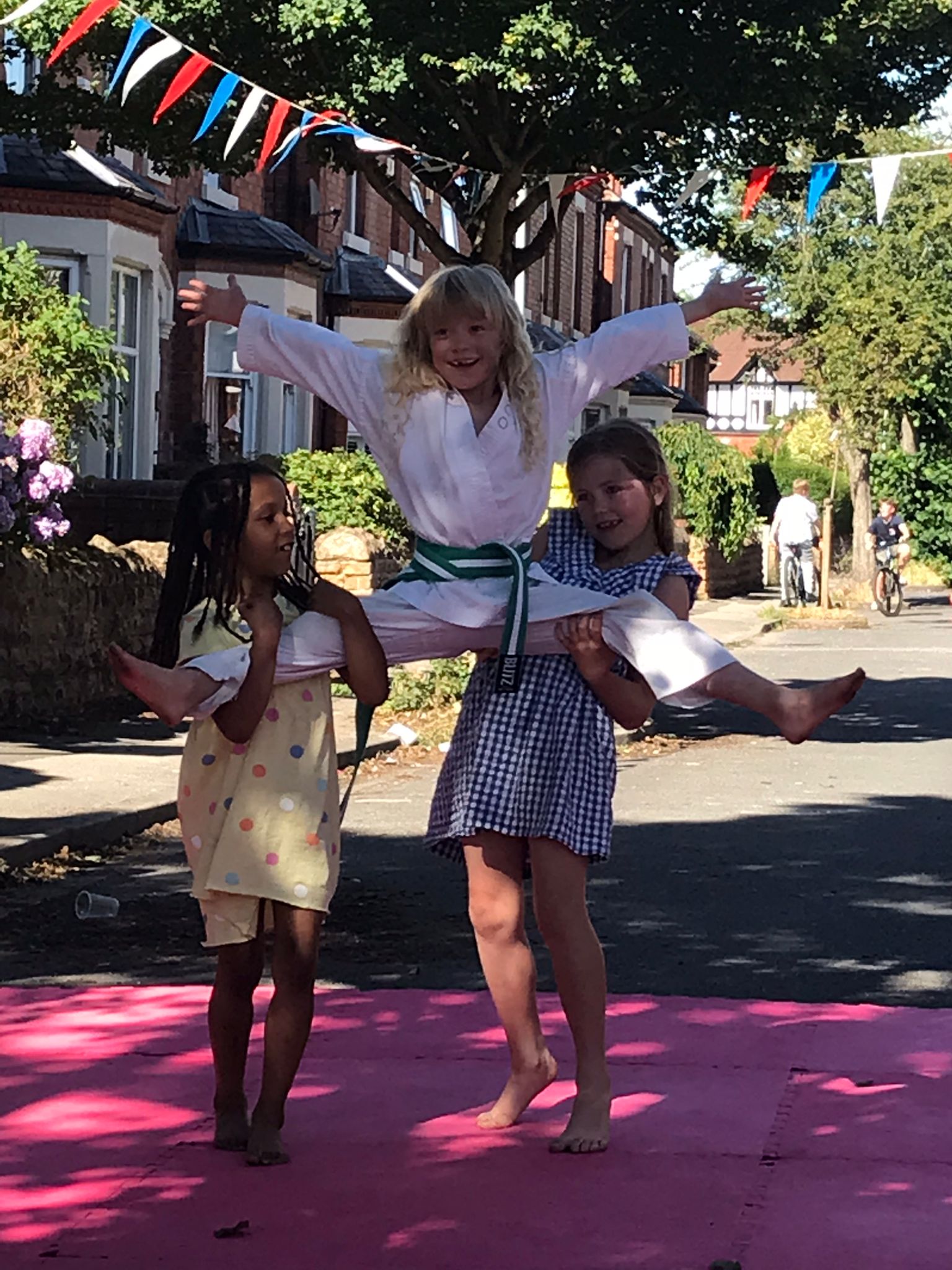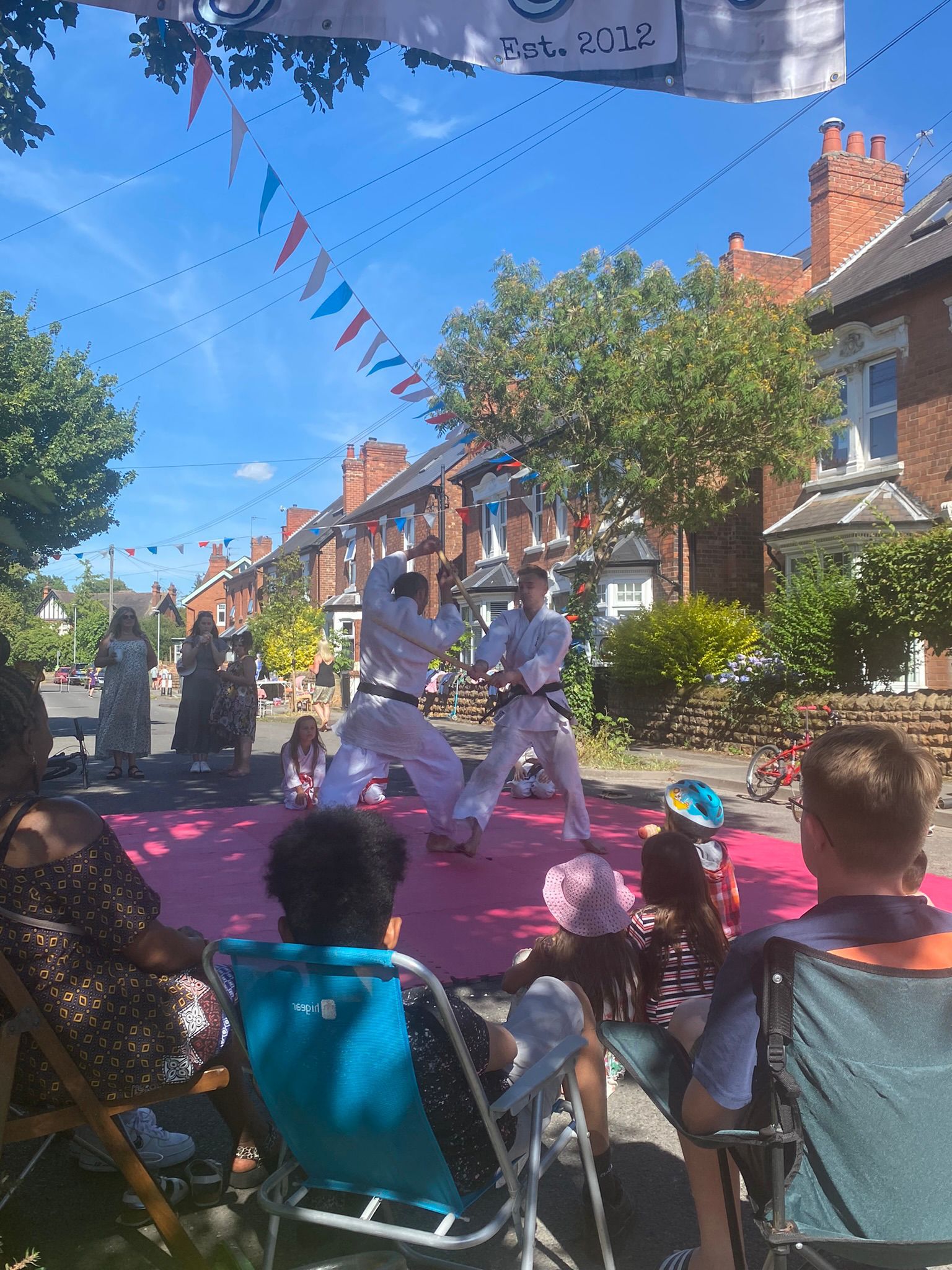 Residents then brought out their tables, chairs and parasols to enjoy the sunshine and neighbourly company over a bring and share lunch, with a delicious spread of sweet and savoury dishes on offer. This was followed by Freddie The Magician, who entertained everyone with jokes and clever tricks using volunteers from the audience. Children enjoyed cooling off in a water sprinkler and then had a big water fight. Then everyone was treated to an informative Aikido demonstration by resident Tad, with many of the children from the street participating in the display.