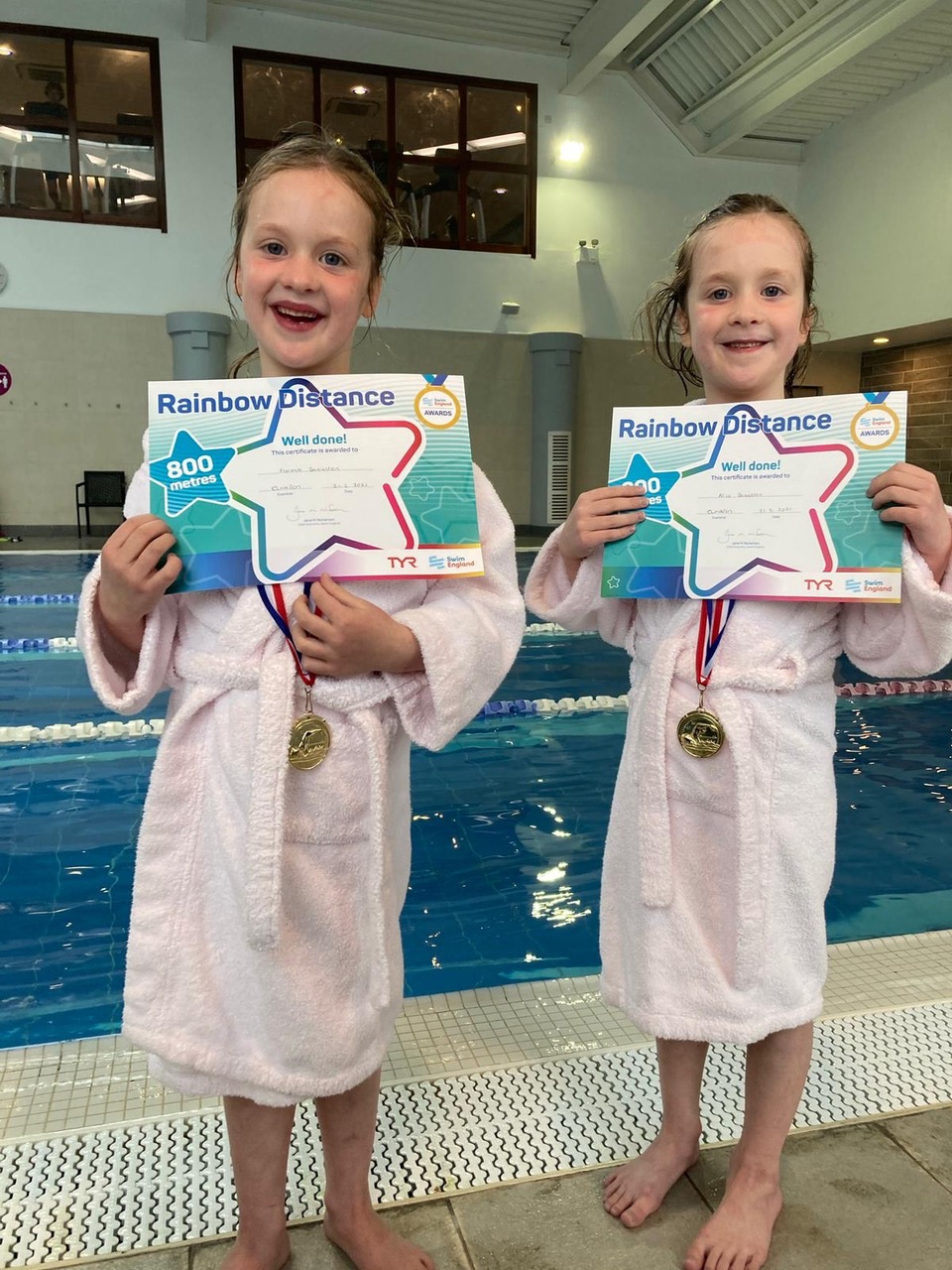 The twin’s mother, Vanessa said, “The girls completed 60 minutes of non-stop swimming- they did 32 lengths individually to gain their 800 metres badge and then went to relay for the remaining 15 minutes. Not bad for 7-years-old! It’s also really nice that they did it together as identical twins too!