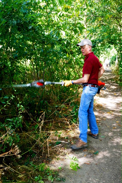 In July more work was done on the two willow areas. A hedge in Play field was clipped, foliage overhanging pathways was cut back and the sculpture border was spruced up. The usual litter pick took place, with particular attention given to the Forest School area and the railway tunnel. The remains of a bonfire in the log circle of Forest School was cleared away. We do not allow fires in Meadow Park and want to reinforce the message that it is not alright to light them.